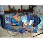 Los equipos para acceso a piscina de TEKVO Bioingenieria son diseñados de acuerdo a las instalaciones y la necesidad de los pacientes; facilitando el ingreso del paciente para el terapeuta como para la familia del paciente, permitiendo llevar a cabo sesiones de hidroterapia de manera segura.